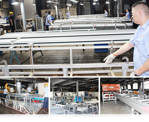 有熔鑄生產(chǎn)線(xiàn) 1 條,擠壓生產(chǎn)線(xiàn) 14 條,氧化生產(chǎn)線(xiàn) 2 條,電泳線(xiàn) 1 條,噴砂生產(chǎn)線(xiàn) 6 條,包裝生產(chǎn)線(xiàn) 4 條,太陽(yáng)能邊框加工線(xiàn) 9 條,形成年產(chǎn) 5 萬(wàn)噸鋁型材的規模;